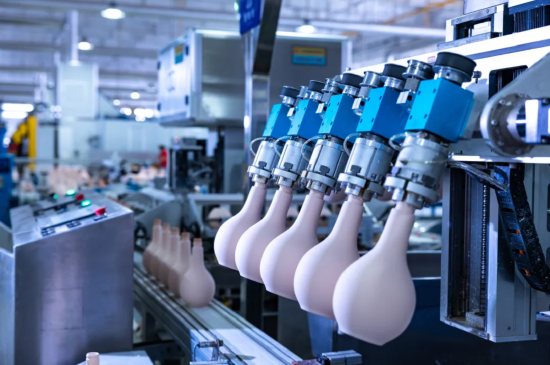 当一个个陶瓷酒瓶从成瓷车间粘接线上传过来,机械手便灵活定位、抓取,然后猿臂轻舒,提升,旋转,将一个个酒瓶修的整整齐齐、洗的干干净净,高效、智能的生产场景,令人印象深刻。